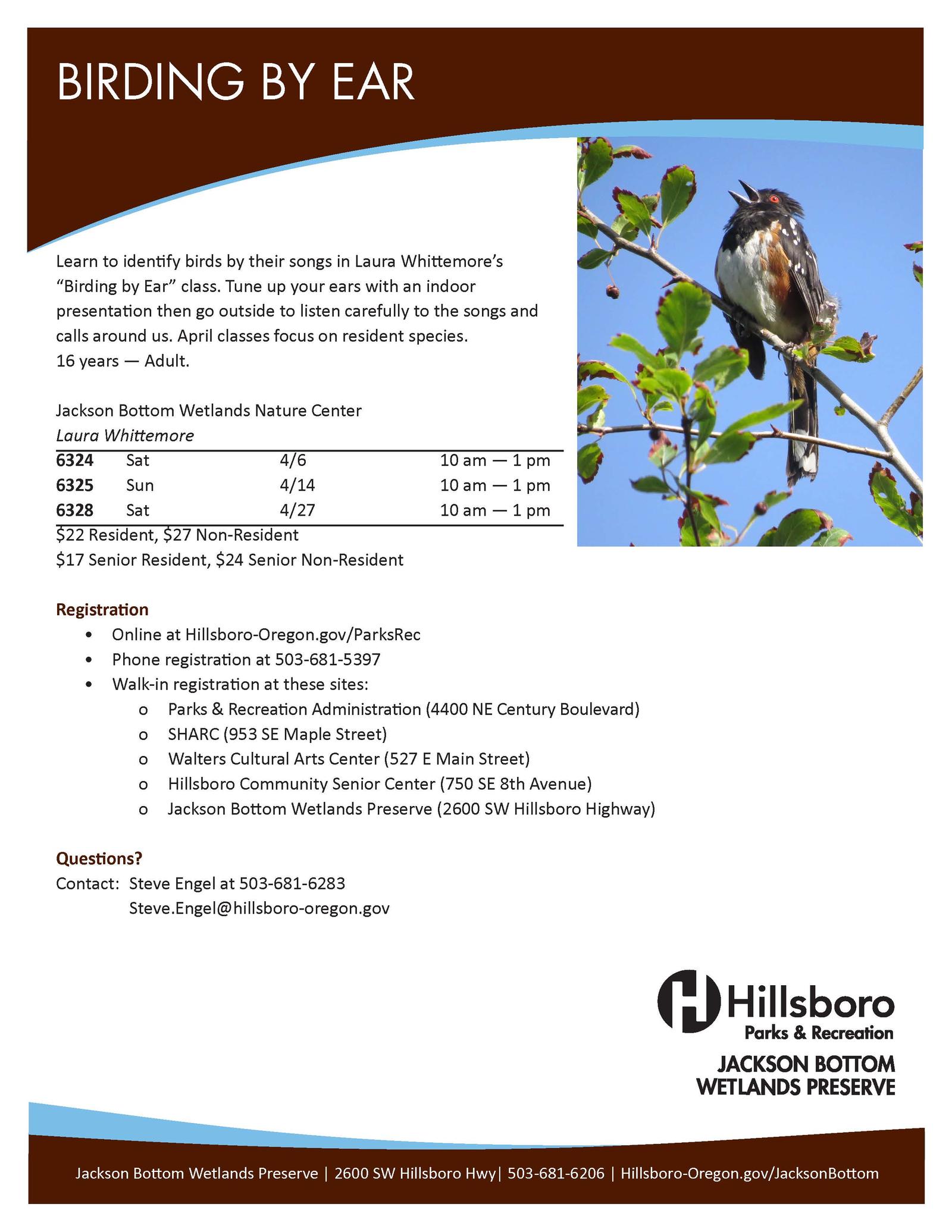 You can also call the Jackson Bottom Nature Center at 503-681-6206 to register: M-F 8am-5pm, S-S 10am-4pm.