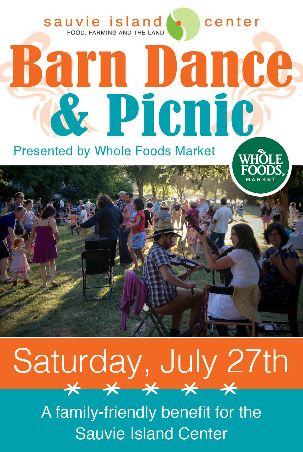 Join us on Saturday, July 27th for an evening of dinner, dancing and doing good on the farm. The kiddos will love the farm scavenger hunt. Kick up your heels (and dance in a square) with live music from Pie for Breakfast. Grab a mircro brew or a glass of wine and peruse the Portland Nursery pop up shop, then settle in for a delicious catered picnic from sponsor Whole Foods Market. The 11th annual Barn Dance & Picnic is a benefit for the Sauvie Island Center's farm-based education programs.